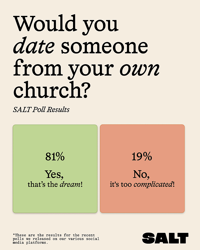 - 81% of Christians would like to find a spouse within their own church
